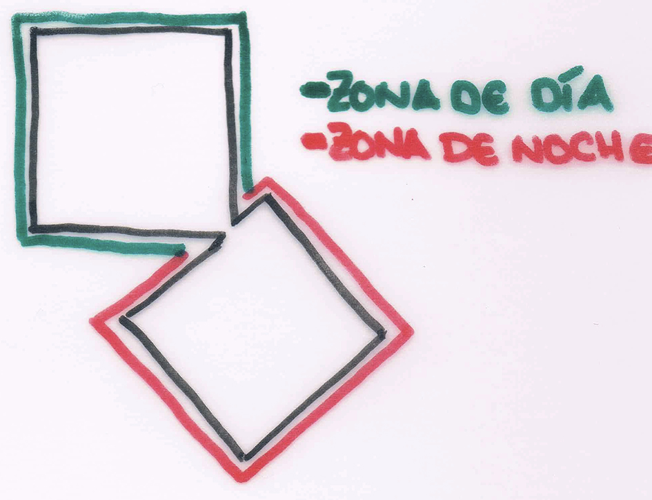 La bifurcación volumétrica se ve reflejada en el programa de la casa. Un ala contiene las habitaciones; las zonas de estar y la cocina ocupan el otro ala . Como tal, nos recuerda a su anterior creación, la Casa Weiss, con su división “binuclear” entre las áreas de estar y las áreas de descanso pero purgado de su ortodoxo estilo modernista